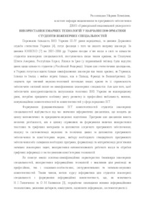 The vast majority of universities Ukraine III-IV level of accreditation, according to the State Statistics Service of Ukraine, trains specialists in a particular direction engineering. According to UNESCO for 2005-2006. Ukraine ranks fifth in the world in the number of engineering students, second only to countries such as United States, South Korea, Japan and Iran (in comparative tables were missing information on the number of students Russian Federation). Under these statistical studies in Ukraine is preparing to double the qualified engineers than countries such as Germany, Spain and Italy, and almost three times higher than in Poland, France and the UK. This indicates a significant scientific and technical potential of our country and its ability to provide global demand for qualified engineering professionals. But in order to ensure the competitiveness of graduates of technical universities in Ukraine at the international level, you need to pay special attention to the development of professional mobility, language, communication competencies and advanced competencies in the field of ICT.