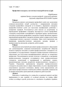 - Кравець, Ю.І. (2013) Professional standards in the system of training of personnel Scientific Bulletin of Institute of Vocational Education NAPS Ukraine., 5 (5). pp. 46-52. ISSN 2223-5752