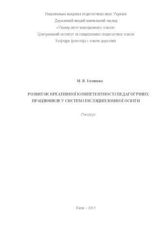 - Ілляхова, М.В. (2015) The development of creative competences teaching staff at post-graduate education [Teaching Resource]