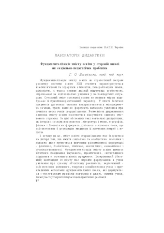 - Васьківська, Галина Олексіївна (2012) Foundation of content of educational in high school as a social- pedagogycal problem In: Анотовані результати науково-дослідної роботи Інституту педагогіки за 2011 рік (1). Інститут педагогіки НАПН України, м.Київ, Україна, pp. 17-18.