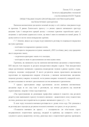 - Попель, М.В. (2015) Projection of a cloud-oriented training systems mathematical sciences In: Звітна наукова конференція Інституту інформаційних технологій і засобів навчання НАПН України . ІІТЗН НАПН України, м.Київ, Україна.
