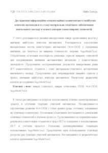 - Попель, М.В. (2016) Research information and communication competence of future teachers of mathematics and the state logistics of the institution in terms of the use of cloud technologies Нова педагогічна думка, 1.