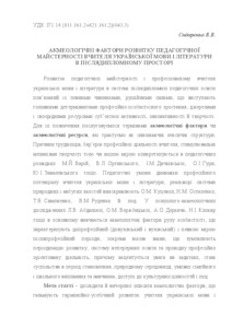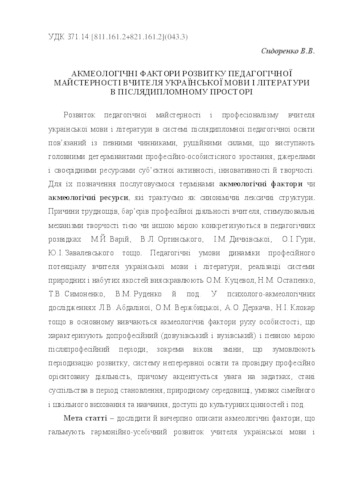 - Сидоренко, В.В. (2012) Acmeological factors of pedagogical skills of teachers of Ukrainian language and literature at postgraduate space Всебічний та гармонійний розвиток особистості: актуальні проблеми сучасності. pp. 171-174.