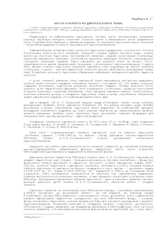 | Divisions: | V. Sukhomlynskyi State Scientific and Pedagogical Library of Ukraine |