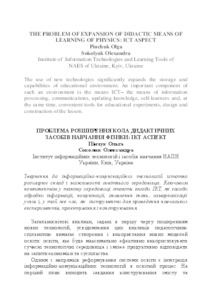 - Соколюк, О.М. and Пінчук, О.П. (2015) The problem of expansion of didactic means of learning of physics: ICT aspect In: Десята міжнародна конференція «Нові інформаційні технології в освіті для всіх» (ITEA-2015) . Міжнародний науково-навчальний центр інформаційних технологій та систем, м.Київ, Україна.