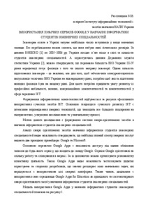 - Рассовицька, М.В. (2015) Using cloud services google in teaching computer science engineering students In: Reporting Scientific Conference IITZN NAPS Ukraine . ІІТЗН НАПН України, м. Київ, Україна.
