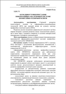 - Плєщ, А.І. (2012) Use of information-analytical system for vocational education Модернізація професійної освіти і навчання: проблеми, пошуки і перспективи (2). pp. 166-172. ISSN ISBN 978-966-2553-03-1
