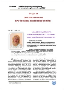 - Волкова, Т.В. (2012) Analytical work of engineer-teachers in the information environment of TVET Науковий вісник Інституту професійно-технічної освіти НАПН України (3). pp. 59-65. ISSN 2223-5752