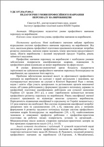 Обгрунтувано педагогічні умови професійного навчання персоналу на виробництві.
