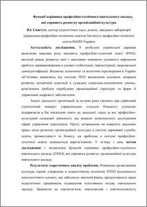 Обгрунтовано функції керівника професійно-технічного навчального закладу, які сприяють розвитку організаційної культури навчального закладу.