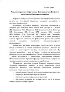 В статті показано роль електронного підручника в професійній підготовці техніків-механіків сільськогосподарського виробництва. Описано основні переваги електронного підручника при формуванні професійного мислення майбутніх техніків-механіків сільськогосподарського виробництва.