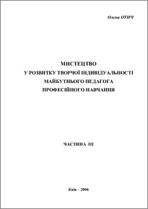 Отич, О.М. (2006) Мистецтво у розвитку творчої індивідуальності майбутнього педагога професійного навчання. Частина ІІІ , 2006 . ІнтерГрафіка, м.Полтава, Україна.