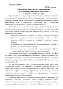 - Упровадження маркетингового підходу в процес підготовки майбутніх учителів до організації культурного дозвілля школярів (deposited 31 Mar 2014 14:17) [Currently Displayed]
