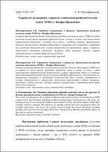 - Пономаревський, С.Б. (2012) Ukrainian devotees in the making of the Russian education system XVIII century.: Theophanes Prokopovych Visnyk, 7 (242). ISSN 2227-2844