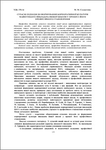 Професійна діяльність сучасноговикладача вищої школи характеризується широким діапазоном « ролей » , серед якихважливе місце займає роль представника викладацького співтовариства , вищогонавчального закладу як єдиної освітньої корпорації . аналіз діяльностівикладачів - випускників магістратури - свідчить про їх неготовністьпідтримувати цінності закладу вищої освіти , нездатності проектувативласну поведінку відповідно до встановлених норм і правил вузу ,будувати міжособистісні відносини з колегами , адміністрацією та іншими співробітниками .Все це говорить про недостатній рівень їх корпоративної культури, формуванняякої здійснюється в ході їх професійного становлення в університеті.Удосконалення професійної підготовки майбутніх викладачів відбувається наоснові особистісного , деятел'ностного , компетентнісного та інноваційного підходів .