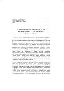 - Солдатенко, М.М. (2012) Self-education activities as a means of becoming a professional and self-development Професійна освіта: педагогіка і психологія, 14 (14). pp. 383-395.