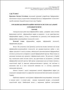 - Кравчина, О.Є. (2009) Administrative information networks in the system of general secondary education Інформаційні технології і засоби навчання, 6 (14). ISSN 2076-8184