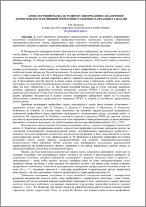 В статті висвітлені особливості акмеологічного підходу до розвитку інформаційно-аналітичної компетентності керівників професійно-технічних навчальних закладів; обґрунтовані інформаційно-аналітичні уміння, сформованість яких забезпечує поетапну реалізацію інформаційно-аналітичної діяльності в процесі управління професійно-технічним навчальним закладом.