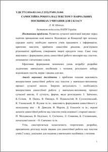 - Шевчук, Л.М. (2012) Independent work on the text in textbooks on reading for class 2 Проблеми сучасного підручника, 1 (12). pp. 759-763. ISSN 978-966-644-248-5