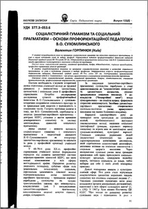 У статті зосереджується увага на принципах соціалістичного гуманізму та цінностях соціального прагматизму, їх ролі в справі підготовки учнів до вибору професії Порушуються питання профорієнтаційної діяльності педагогів Павлиської середньої школи 60-70-хроків XX cm. Підкреслюється правочинність педагогічних ідей В.О. Сухамлинського як засади гармонійного і повновартісного виховання особистості трудівника.