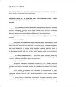 - Бісіркін, П.М. (2008) Research of ICT influencing on personality qualities of pupils of initial classes and conditions of edukational process in general school Інформаційні технології і засоби навчання, 1 (5). ISSN 2076-8184