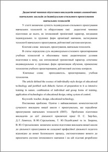 The article defined the essence of individually-style design of educational technology and justified such didactic factors of preparation to it as intensive training in nature, combination of individual and group forms of training, application of technologies of educational design, rating system of control.