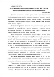 The article is devoted to the analysis of results of psychological study of problem of development of psychological culture of healthy lifestyle in educational process; the model of psychological components of culture of healthy lifestyle are described.