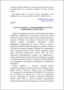- Гириловська, І.В. (2011) Kiviata Diagram as an efficient tool for monitoring the quality of vocational education Модернізація професійної освіти і навчання: проблеми, пошуки і перспективи (1). pp. 76-81. ISSN ISBN 978-966-2553-03-1