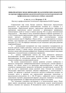 - Петренко, Лариса Михайлівна (2012) Інваріантне моделювання педагогічних обєктів (на прикладі інформаційно-аналітичної компетентності керівників професійно-технічних навчальних закладів) In: симпозиум, 5 травня 2012 р., м. Київ, Україна.