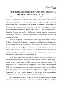 Проаналізовано досвід США, Великої Британії, Франції, Польщі та країн Прибалтики щодо підготовки андрагогів. Виокремлено провідні ролі андрагогічного персоналу. Уточнено поняття "компетентність" та «професійна компетентність андрагога»
