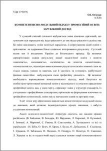 - Огієнко, О.І. (2010) The competency-modular approach in vocation education: foreign experience Педагогіка і психологія професійної освіти (4). pp. 62-70.