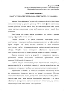 - Науменко, О.М. (2011) Facilities of forming of the computer oriented educational environment In: Засоби і технології сучасного навчального середовища: Матеріали Міжнародної VII (XVII) науково-практичної конференції, м. Кіровоград, 20-21 травня 2011 року. , 1 (1). Кіровоград: ТОВ "КОД", 2011, Кіровоград.