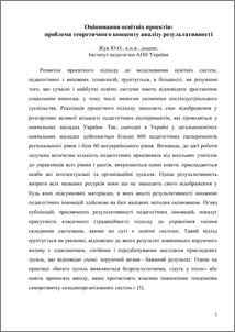 - Жук, Ю.О. (2010) Educational projects evaluation: problem of theoretical concept of performance analysis Молодь і ринок, 1-2 (60-61). pp. 33-38.