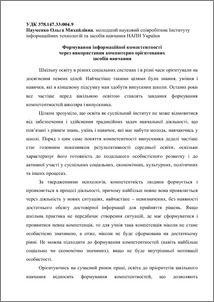 - Науменко, О.М. (2010) Forming of informative competence is through the use of the computer oriented facilities of studies In: Звітна наукова конференція Інституту інформаційних технологій і засобів навчання АПН України: Матеріали наукової конференції. , 1 . ІІТЗН НАПН України , Київ.