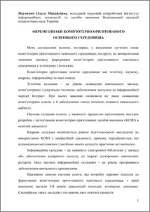 - Науменко, О.М. (2011) Separate signs of the computer oriented educational environment In: Звітна наукова конференція Інституту інформаційних технологій і засобів навчання НАПН України: Матеріали наукової конференції. , 1 (1). ІІТЗН НАПН України , Київ.