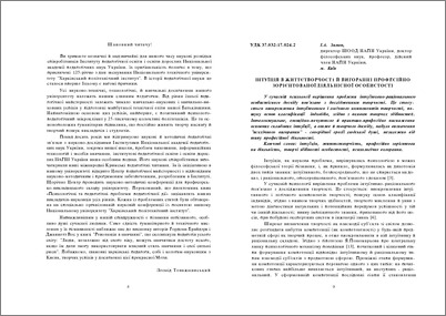 - Зязюн, Іван Андрійович (2012) Intuition in life creation and activity-oriented professional burnout personality Psychological and pedagogical problems of teaching actions (Scientific journal) (1). pp. 9-23.