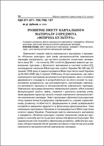 - Зубалій, М.Д. (2010) Розвиток змісту навчального матеріалу з предмета «фізична культура» Теоретико-методичні проблеми виховання дітей та учнівської молоді, 1 (14). pp. 96-104. ISSN ISBN 978-966-189-055-7
