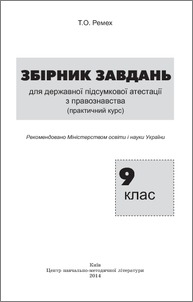 Ремех, Тетяна Олексіївна (2014) Збірник завдань для державної підсумкової атестації з правознавства (практичний курс): 9 кл. . Центр навчально-методичної літератури, м. Київ, Україна. ISBN 978-617-626-221-3