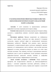 - Мілохіна, М.О. (2013) Стан проблеми професійної підготовки майбутніх операторів комп’ютерного набору в педагогічній теорії та практиці Науковий часопис Національного педагогічного університету імені М.П. Драгоманова (39). pp. 153-158.