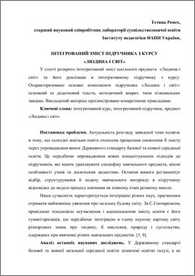 - Ремех, Тетяна Олексіївна (2013) Integrated content of the textbook for course "The Man and the World" Проблеми сучасного підручника (13). pp. 225-232. ISSN 978-966-644-364-2