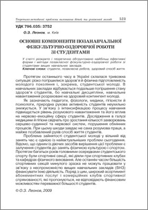 - Леонов, О.З. (2009) Основні компоненти позанавчальної фізкультурно-оздоровчої роботи зі студентами Теоретико-методичні проблеми виховання дітей та учнівської молоді, 2 (13). pp. 523-531. ISSN ISBN 978-966-2124-50-7