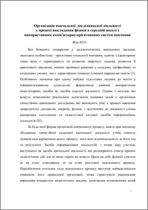 - Жук, Ю.О. (2001) Організація навчальної дослідницької діяльності у процесі викладання фізики в середній школі з використанням комп’ютерно-орієнтованих систем навчання Наукові записки: Зб. наук. статей Національного пед. університету ім. М.П. Драгоманова (12). pp. 118-125.