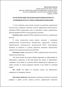 - Свистун, Валентина Іванівна (2013) Трансформація управлінської компетентності керівників ПТНЗ в умовах ринкової економіки Науковий часопис Національного педагогічного університету імені М.П.Драгоманова (39). pp. 182-187.