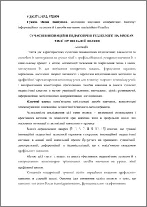 - Тукало, М.Д. (2011) Modern innovative pedagogical technology for profile school chemistry lessons Інформаційні технології і засоби навчання, 4 (24). ISSN 2076-8184