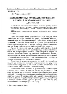 Стаття містить методику впровадження активних форм і методів корекційного впливу в роботі з важковиховуваними підлітками (психотерапія, ігрові методи в роботі з учнями, батьками і вчителями тощо).