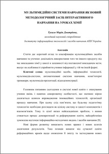 - Тукало, М.Д. (2007) Multimedia learning system as a new methodological tool for interactive learning chemistry lessons Інформаційні технології і засоби навчання, 3 (4). ISSN 2076-8184