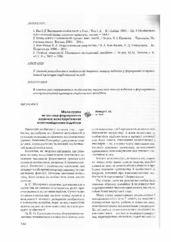 - Куниця, Т.Ю. (2009) A small group as the basis of the skills of constructive relations teens Педагогічна освіта: теорія і практика. Педагогіка., 1 (11). pp. 144-148. ISSN 978-966-7548-60-5