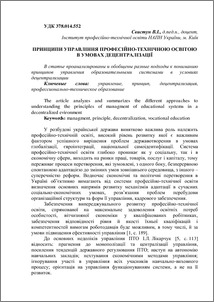 Проаналізовано й узагальнено різні підходи до розуміння принципів управління освітніми системами в умовах децентралізації.