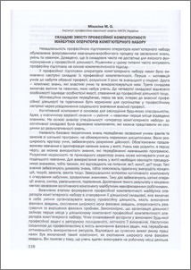 Охарактеризовано мотивационную, когнитивную, деятельностную и личностную составляющие профессиональной компетентности, которая формируется у будущих операторов компьютерного набора в профессионально-технических учебных заведениях.