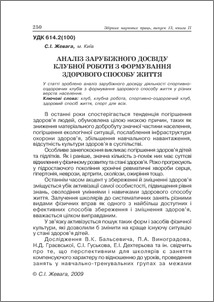 - Жевага, С.І. (2009) Аналіз зарубіжного досвіду клубної роботи з формування здорового способу життя Теоретико-методичні проблеми виховання дітей та учнівської молоді, 2 (13). pp. 250-255. ISSN ISBN 978-966-2124-50-7